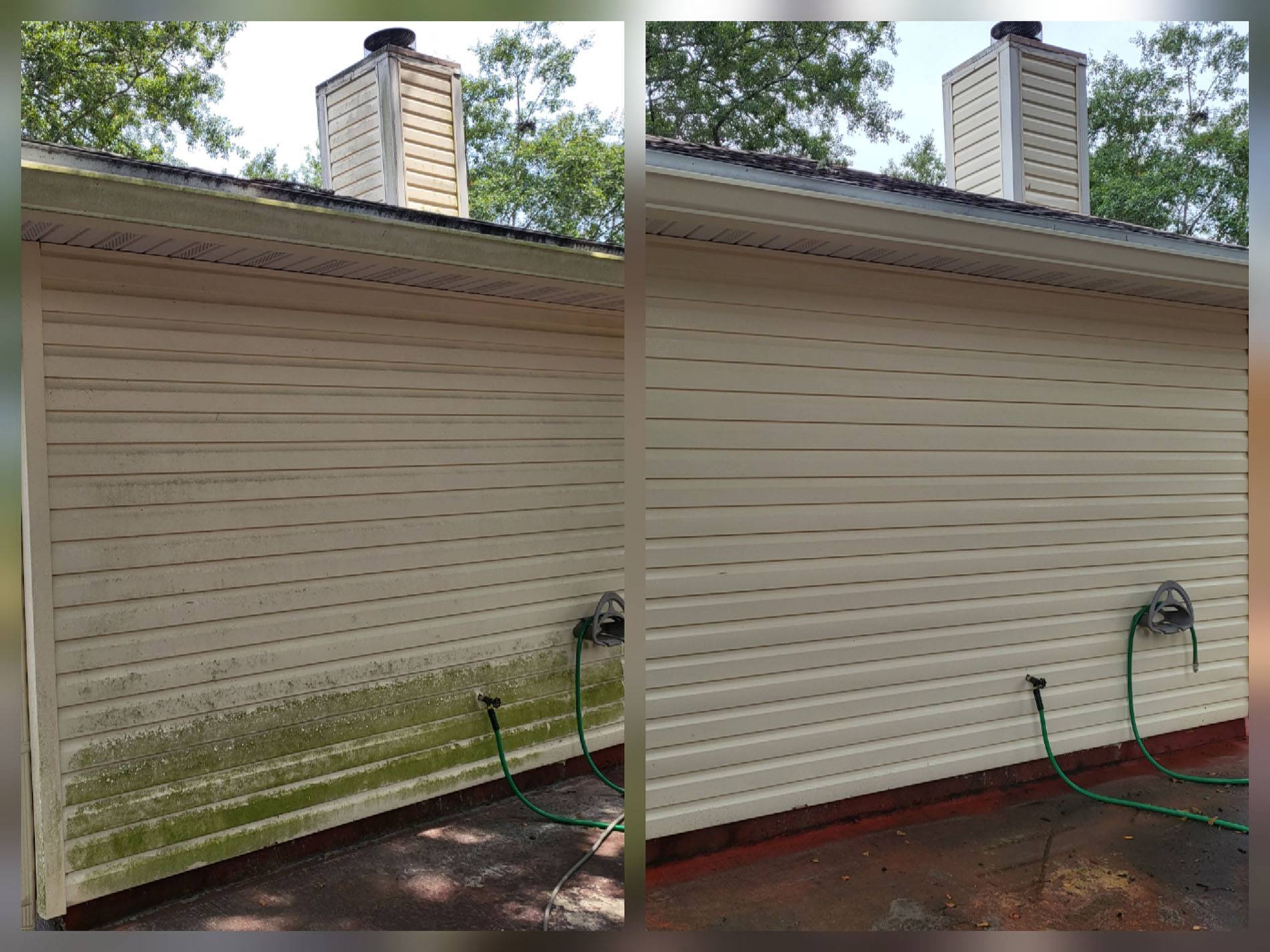 Bring back your home’s clean, fresh look with Jacksonville’s friendly pressure washing team. We remove mold, mildew, dirt nests, and cobwebs from hard-to-reach areas like eaves and gutters using gentle techniques. Get rid of those green stains along your home, driveway, and porches, even vinyl fences.